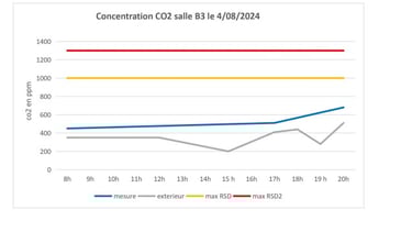 La lecture directe du CO2 peut être considérée comme un "thermomètre" de l’aération des pièces.